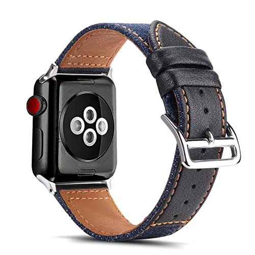 ☆【Compatible con Apple Watch Band 38mm/40mm/41mm】Tasikar cinturino Design Ibrido in denim in vera pelle compatibile con Apple Watch serie 8 serie 7 (41mm) SE serie 6 serie 5 serie 4 (40mm) serie 3 serie 2 serie 1 (38mm) tutti i modelli
