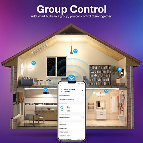 【Controllo Remoto con APP e Timer】Questa led lampadina smart cambia colore con può essere controllata da APP intelligente. ovunque tu sia, puoi controllare a distanza l'accensione / spegnimento della tua lampadina intelligente installando l'app "Smart Life" dal tuo telefono o tablet, cambio colore e luminosità. La lampadina a LED smart si accenderà e si spegnerà automaticamente in base al tempo impostato.