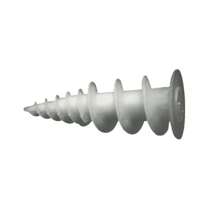 In poliammide, ideale per fissaggi su cartongesso di lampade, battiscopa, interruttori, tubi rigidi e binari per tende