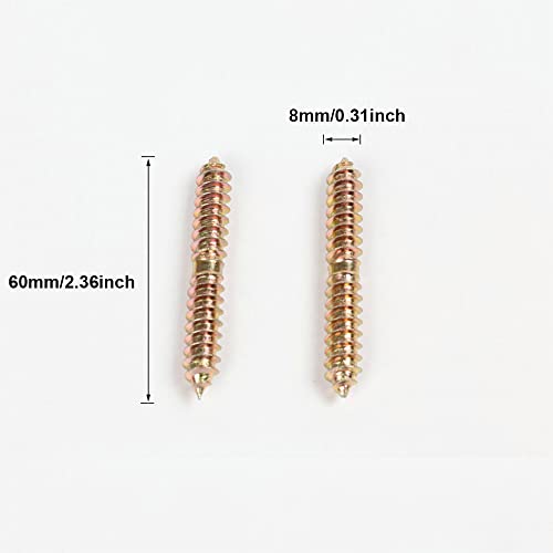 10 PZ Viti per tasselli in legno a doppia testa, Bulloni filettati autofilettanti in ferro Vite per tasselli di fissaggio per mobili in legno per fissaggio di mobili, legno di collegamento, 8*50 mm