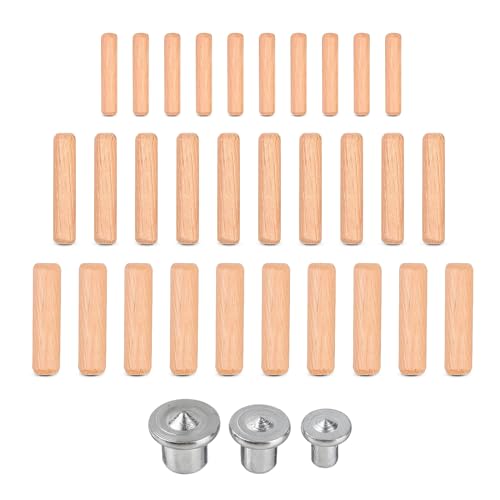 Tasselli Legno,Tasselli in Legno Scanalate in Legno,Scanalati Tasselli in Legno,Spine Legno,Perni di Centraggio,Anelli per Punte Trapano,Scanalate in Legno,Perni di Legno Duro Perno Scanalato,33PCS