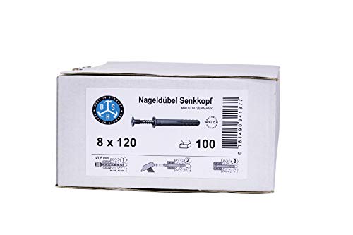 BSH® Tasselli a percussione 6 x 40 fino a 8 x 120 mm, Made in Germany, 100 pezzi, testa svasata a croce, tasselli in nylon, 100% Made in Germany - 100% qualità (8 x 120 mm)