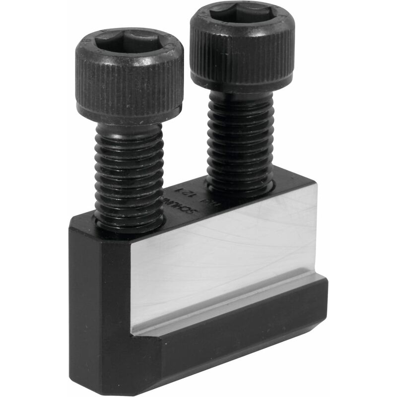 Rettificati e bonificati. Per: Röhm KFD-HE. Fornitura: Incluse viti cilindriche DIN 912 − 12,9! Nota: Altri tasselli disponibili su richiesta. Dati tecnici Tipo di prodotto Tassello Altezza H, mm 28 Altezza gradini h, mm 11,5 Larghezza cava S, mm 21 Coppia di serraggio massima, N·m 150 Distanza fori b, mm 30 Adatto per Röhm KFD-HE 315 / 21 Filettatura G M16
