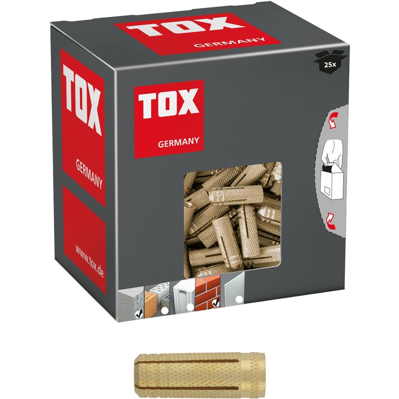 Caratteristiche e vantaggi L'elemento di fissaggio può essere staccato e serrato senza allentare il perno Non è necessario alcun attrezzo di regolazione Fissaggio resistente alla corrosione all'interno e all'esterno Fissaggio economicamente conveniente Descrizione e campo di applicazione Perno filettato interno in ottone a spacco multiplo La speciale superficie zigrinata impedisce la rotazione del foro Speciale superficie zigrinata Spina in ottone anticorrosione La designazione della spina indica il diametro della vite richiesto Verarbeitung & Montage Lunghezza vite Ls = lunghezza del perno + spessore del fissaggio tfix Adatto a tutte le viti e barre filettate con filettatura metrica Se necessario I perni in ottone possono essere leggermente preespansi avvitando la vite filettata Montaggio passante e montaggio non passante Per il montaggio a distanza in combinazione con barre filettate Diametro del trapano 8 Altezza 8,00 Profondità del foro 35 Quantità di contenuto 25.0 Dimensioni