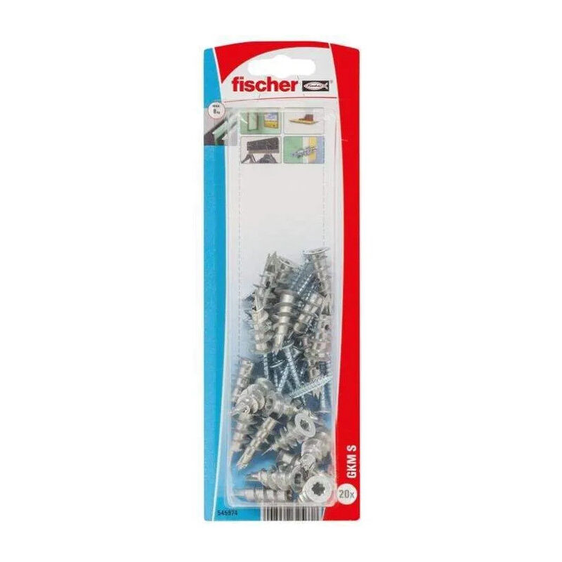 Il tassello per cartongesso GKM S K è fatto di metallo. Il tassello è adatto all'installazione nel muro. La spina viene installata a filo del substrato a mano o con un avvitatore elettrico. Per il cartongesso monostrato non è necessaria alcuna preforatura. Nelle lastre di gesso e nelle lastre doppie di gesso è necessario preforare con una punta di Ø 8 mm. Il GKM S K è fornito completo di una vite per truciolare svasata. Questo lo rende universalmente adatto per il fissaggio sicuro e rapido di lampade, installazioni elettriche e complementi d'arredo. Vantaggi Grazie alle sue caratteristiche del materiale, GKM può essere installato in cartongesso e fibra di legno e utilizzato con vari ganci, viti e perni. Questo apre una vasta gamma di applicazioni. La filettatura autofilettante del GKM permette un fissaggio sicuro. Si ottiene così un'alta capacità di carico. L'incavo a croce permette l'uso di un cacciavite standard o di un bit pozidrive 2. Non sono richiesti strumenti speciali. La