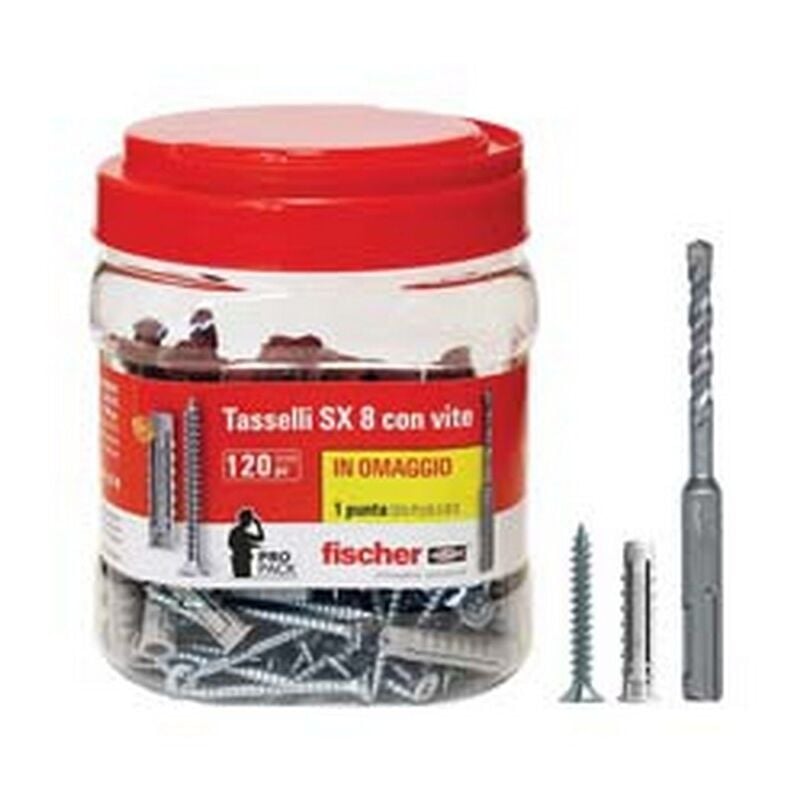 Fornito con vite per truciolare in acciaio zinco cromato con testa svasata piana e impronta pozdrive - pz.1 punta sds plus mm.8
