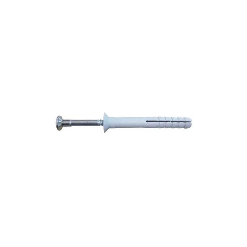 Tassello svasato, con chiodo a vite TF 6x60, set di 100. DESCRIZIONE Tassello a martello con collare svasato. Espansione per bussare o avvitare. Tassello 100% nylon. Viti in acciaio 5.8. I + PRODOTTI Facile e veloce: l'espansione si effettua picchiettando attraverso la parte da fissare. 5.8 viti in acciaio: nessuna deformazione quando vengono colpite. Grande diametro della flangia: migliore placcatura. Collare fresato. Consegnato preassemblato. APPLICAZIONI Strutture in metallo/legno, guide in cartongesso, grondaie, tacchetti, ...