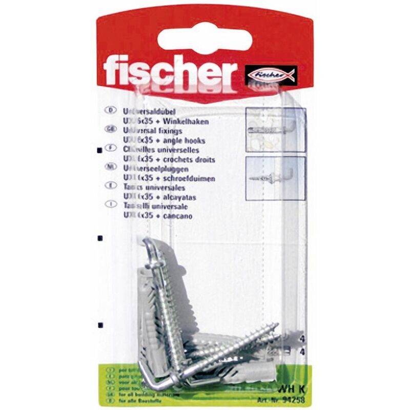 Dettagli tecnici Caratteristiche tasselli incl. Gancio angolato Contenuto 4 pz. Dimensione del prodotto, lunghezza 50 mm Dimensione, Ø 8 mm Dimensioni (Ø x L) 8 mm x 50 mm Materiale Poliammide Tipo prodotto Tassello universale Tasselli universali UX 8 x 50 WHK Il Fischer Universal Plug UX è il tuttofare in nylon di alta qualità. Il tassello è in cemento, ma anche in calcestruzzo cellulare, muratura e in cartongesso e in fibra di gesso. In questi materiali si annoda il tassello. Pratico bordo stampato. In questo modo non scivola via il tassello durante l'inserimento nel foro. Nella confezione sono già presenti ganci angolari. Ciò consente di risparmiare sui risultati di ricerca e garantisce che questi si adattano in modo ottimale al tassello. Con il tassello universale UX fischer con ganci ad angolo è possibile fissare ad esempio immagini, Ford e armadietti sospesi. Testo tradotto automaticamente Caratteristiche Per il fissaggio di: quadri, rilevatori di movimento, lampade, battiscopa
