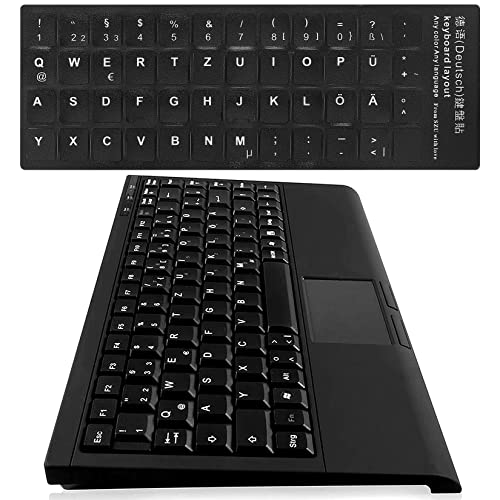 Tastiera Adesivi in Tedesco per Computer Portatile e Desktop, Kit di 7 Pezzi con Lettere Bianche su Sfondo Nero