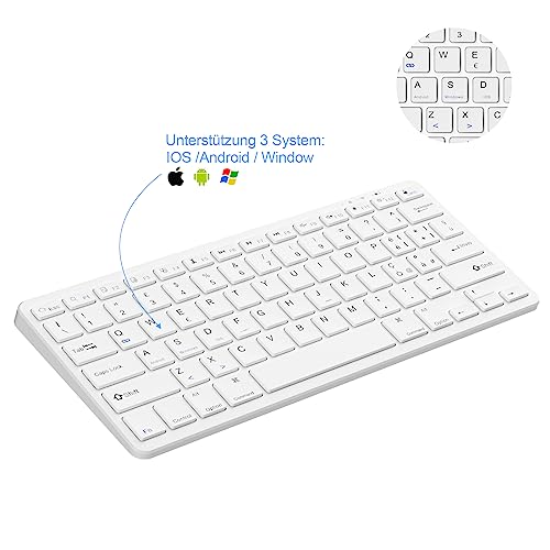 【Ampia Compatibilità】La tastiera Bluetooth è pienamente compatibile con i sistemi IOS, Android e Windows. Facile commutazione con i tasti di scelta rapida (FN+A/S/D). Funziona benissimo per smartphone, desktop, laptop, tablet, notebook e altri dispositivi. Compreso iPad/iPhone/Tablet Android come Samsung Galaxy Tab, Google Nexus/Windows ecc.