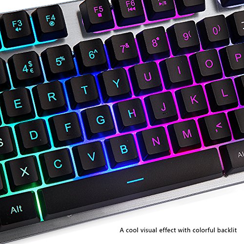 Retroilluminazione a LED colorata: la retroilluminazione a LED dinamica con modalità di illuminazione vivida ti consente di personalizzare la retroilluminazione in base alle tue preferenze. Premere il tasto "FN+Scrlk", passare da una modalità all'altra e sentirti fresco. È un grande aiuto per te quando usi la tastiera al buio e la luminosità è regolabile (anche può essere spenta).