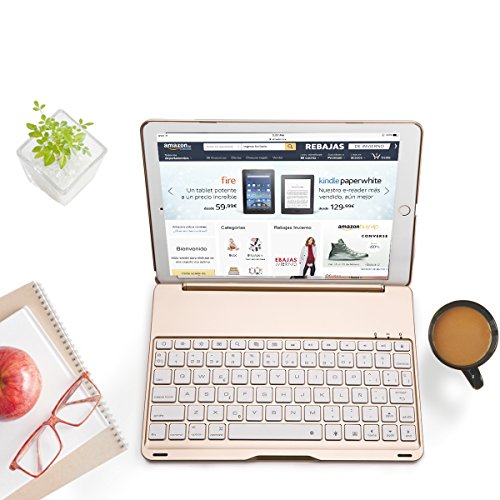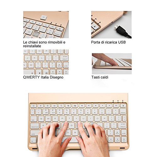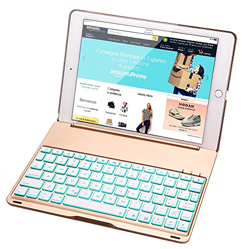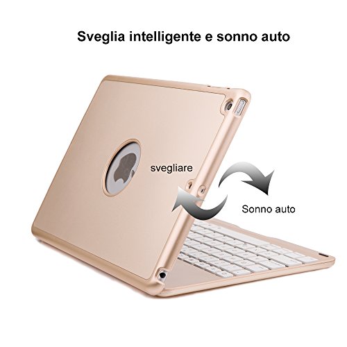 IPad Air Tastiera Cassa, iEGrow F8S Bluetooth Tastiera Protettiva Cassa Senza fili Keyboard Case Cover con 7 Colori Retroilluminato a LED per iPad 5 [Layout Italiano QWERTY] Oro
