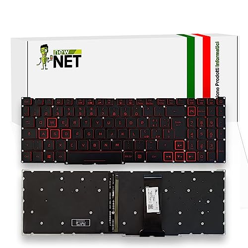 New net - Tastiera Compatibile con Notebook Acer Nitro 5 AN515-54-71FT AN515-55-50Z3 AN517-51-550B AN517-51-757H AN517-52-5744 [Senza Frame - Colore Tasti Rosso - Retroilluminata - Layout ITA]