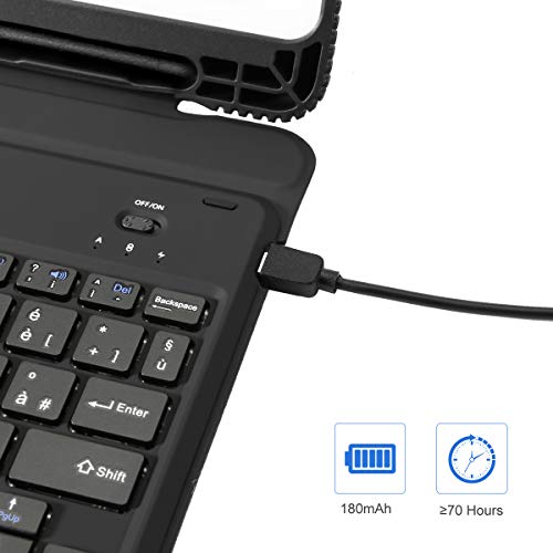 Batteria ricaricabile a lunga durata: la batteria da 180 mAh ha una durata ultra lunga che può funzionare fino a 70 ore dopo ogni carica completa. Leggero e portatile: questa custodia per tastiera è leggera e facile da riporre nella borsa e facile da trasportare.