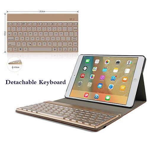 IPad Pro 9.7 tastiera, Dingrich portatile Apple iPad Custodia Oro Rosa Tastiera Bluetooth wireless removibile al litio con 7 colori Retroilluminazione Custodia in pelle Smart Cover supporto e protezione schermo per iPad Pro 9.7 Tablet