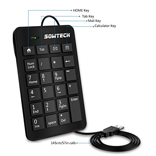 Il tastierino dispone del numlock, ottimo per coloro che lavorano su fogli di calcolo excel. Rispetto agli altri modelli di tastiere il tastierino Sowtech possiede 4 tasti supplementari sulla parte superiore: Home, Tab, Mail e calcolatrice.