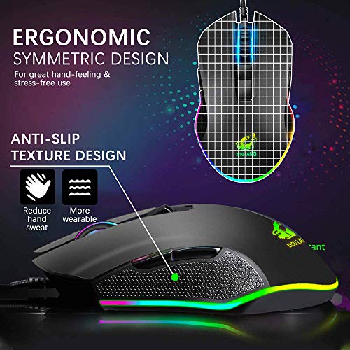 【Mouse da gioco con LED RGB】 Il mouse con retroilluminazione RGB simmetrico e aerodinamico offre un comodo design con impugnatura ad artiglio, uso a lungo termine senza fatica. Resistente cavo USB intrecciato.6 pulsanti, DPI a 4 livelli regolabile: 800/1600/1800/2400;
