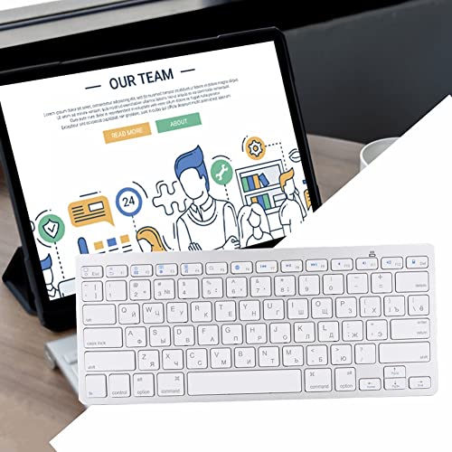 Tastiera in lingua russa, tastiera Bluetooth wireless ultrasottile, tastiera design multifunzionale a 78 tasti per computer/desktop/PC/laptop argento bianco