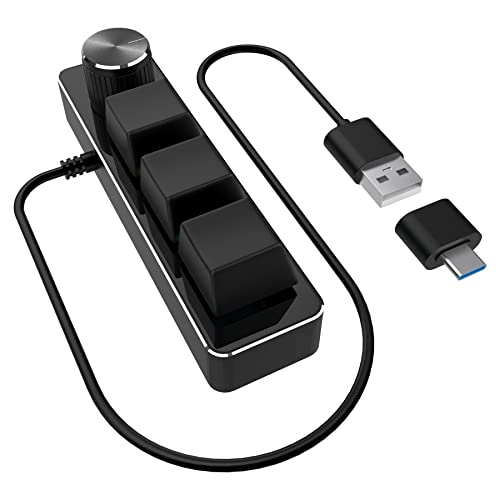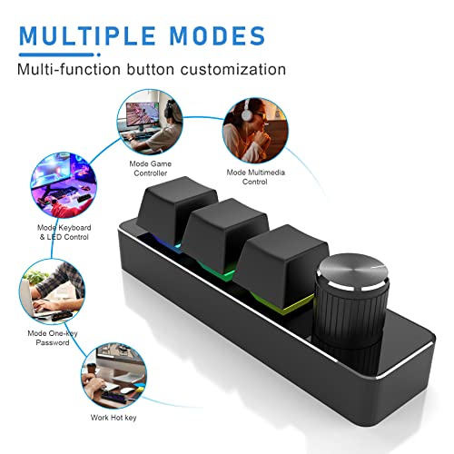 [3 tasti e 1 manopola programmabile] 3 tasti, la manopola premuta, ruotare in senso orario e ruotare in senso antiorario può essere personalizzata. La modalità di illuminazione colorata a LED RGB può anche essere impostata, modificare diversi effetti di luce e spegnere la luce.
