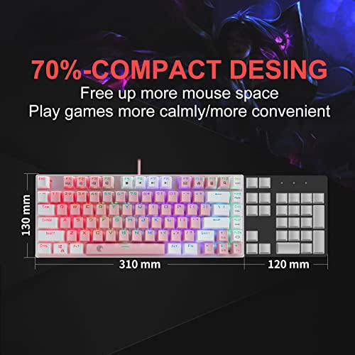 Tastiera da gioco meccanica: interruttore blu, base in metallo rosa, più stabile e durevole da usare, può offrirti un suono di feedback meccanico chiaro, è il tuo buon partner per giocare.