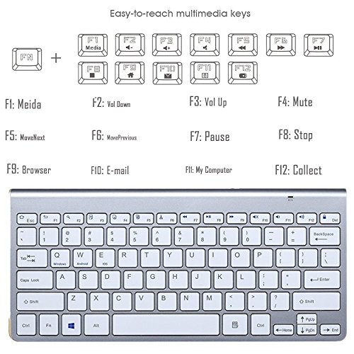 Materiale: ABS materiale ambientale, design unico di supporto nascosto, antipolvere e guscio di sporco rendono la tastiera e il mouse sembrano puliti e ordinati. Tasti Twelve F1-F12: accesso immediato ai tuoi film, musica, internet, e-mail, volume, pausa e altro ancora. Ideale per lavoro produttivo e giochi per PC.