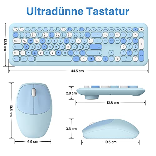Tastiera Mouse senza fili 2,4 G tastiera e mouse wireless silenzioso, tastiera QWERTZ layout tedesco con ricevitore USB per PC/laptop/Smart TV, colore: blu