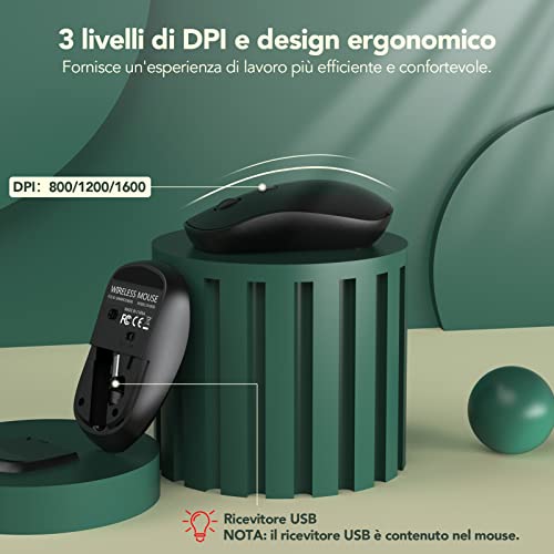 ▶【Risposta Rapida, Nessun Ritardo】: Dì addio ai cavi lunghi e semplifica la tua scrivania. Basta collegare il ricevitore USB 2 in 1 (situato nella parte inferiore del mouse) al computer e godere di una connessione wireless stabile a 2,4 GHz che non si interrompe mai. La distanza di connessione più lunga può raggiungere i 10 metri, senza mai ritardare.