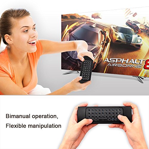 ▶Mini tastiera qwerty wireless e sistema di movimento a 6 assi: solo 38 tasti, ma possono inserire tutti i caratteri in uno. Premere "Alt" per passare a segni di punteggiatura o lettere. Il sensore 3-Gyro + 3-G permette al mouse di essere controllato con precisione per il gioco di rilevamento del movimento