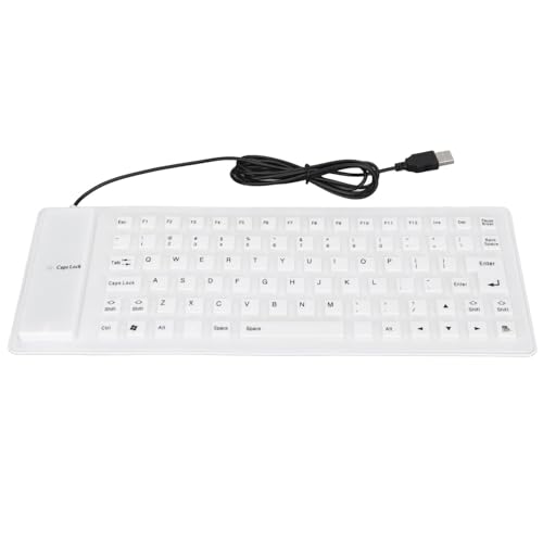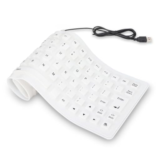 Tastiera in Silicone Impermeabile, 85 Tasti USB Cablata Tastiera Flessibile Portatile in Silicone Morbida e Silenziosa Tastiera Rollup per PC Laptop Notebook e Viaggio (Bianco)