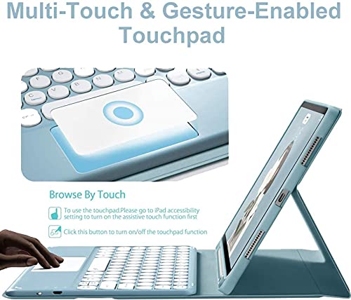 Caso Da Tastiera Touchpad TOUCHPAD PRO Da 11 Pollici - Touchpad Cappello Rotondo Tastiera Bluetooth Slim Folio Pelle Smart Cover Per 2020 IPad Pro 11,Blue
