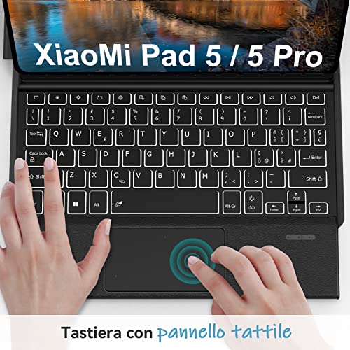 ASHU Tastiera con Touchpad per Xiaomi Pad 5/5 Pro, Tastiera Retroilluminata Bluetooth, Layout Italiano, Custodia Protettiva per iPad Xiaomi Pad 5 2021, Nero