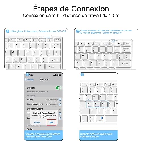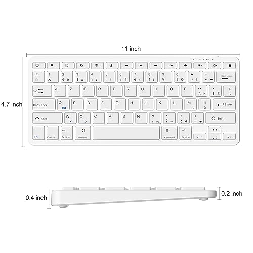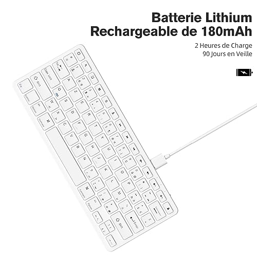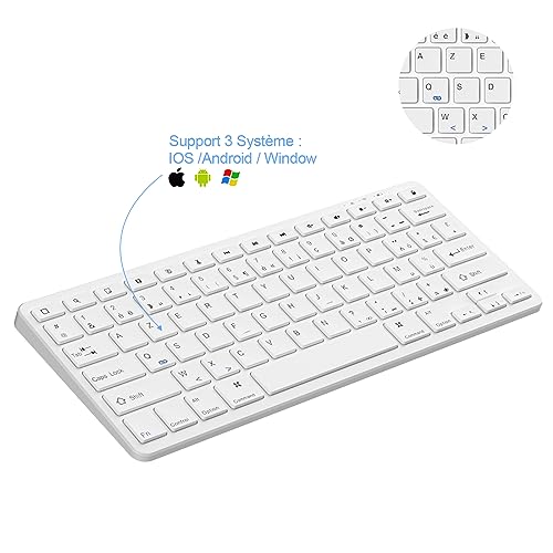 Tastiera wireless Bluetooth,Francese Tastiera Wireless Ricaricabile,Tastiera digitale resistente agli spruzzi, Tastiera Bluetooth I tre sistemi sono compatibili con iOS/Windows/Android (White)