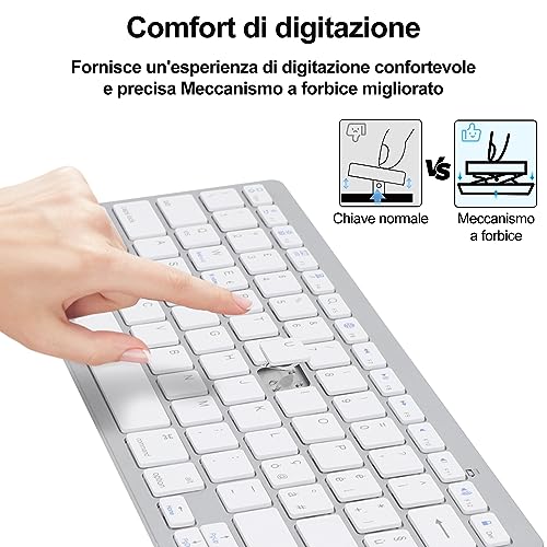Tastiera Wireless Bluetooth Italiano Layout, Compatibile Qualsiasi Android/Windows/IOS Sistema, Smartphone, Tablet Apple iPad, Samsung Galaxy Tab, Google Nexus, Amazon Fire, Microsoft, Bianco