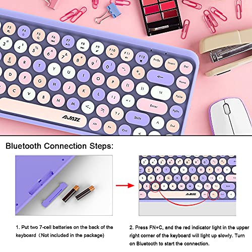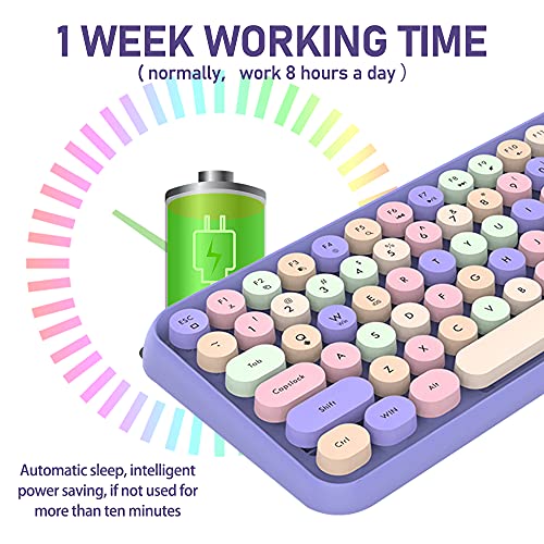 Tastiera wireless Bluetooth, simpatica mini tastiera compatta a 84 tasti, tecnologia di connessione wireless a 2,4 GHz, retro keycap in ABS, pannello opaco, design ergonomico (colore misto viola)