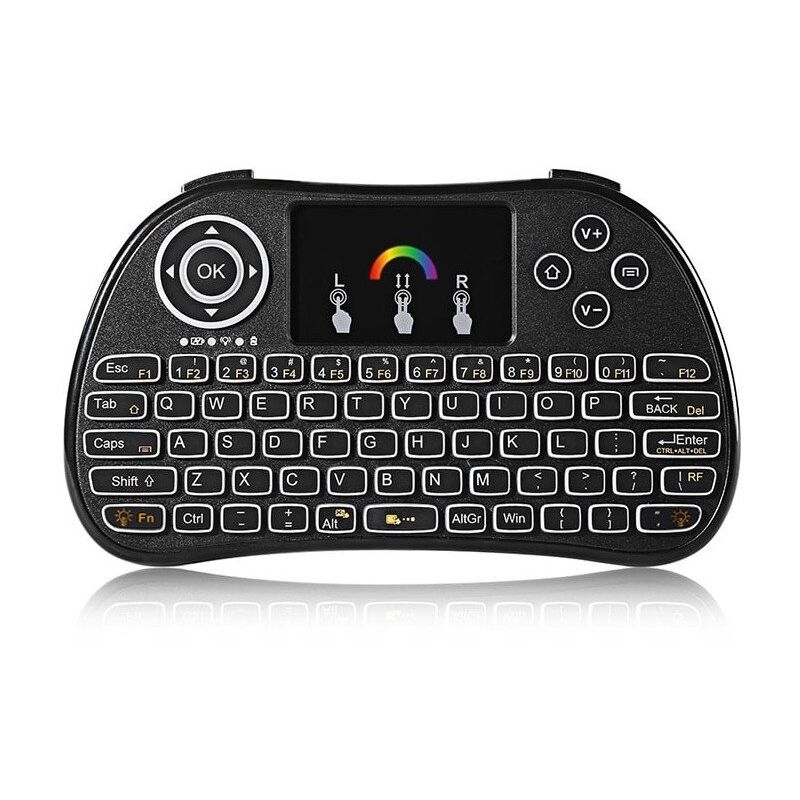 Una mini tastiera wireless per te che vuoi migliorare il controllo del tuo PC, Smart TV, TV-Box o Console di gioco da una distanza rilassata fino a 15 metri. La tastiera è retroilluminata per un facile utilizzo anche al buio ed è tastiera, mouse e touchscreen all-in-one. La tastiera ha un layout QWERTY inglese, Plug 'N' Play per un facile utilizzo e un design compatto e portatile che ti consente di portare la tastiera con te ovunque e in ogni momento. Ottimo accessorio per l'intrattenimento o per quando hai intenzione di fare una presentazione o un discorso! - Tastiera, mouse e touchpad All-in-one - Layout tastiera QWERTY - Compatibile con PC, XBox, PS4, Smart TV/Android TV-Box, ecc. - Retroilluminazione a 7 colori - Portata di 15 metri e Plug 'N' Play per un uso facile e veloce - Design compatto e portatile in modo da poterlo portare facilmente con te ovunque Specifiche: Colore nero Materiale: plastica Dimensioni: 14,5 cm x 8,5 cm x 1 cm Peso: 135 grammi Batteria: 300mAh BL - 5B agli