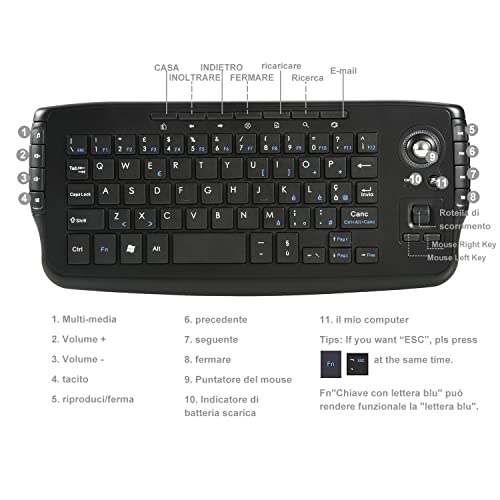 Mini Tastiera Wireless da 2,4 Ghz con Rotella di Scorrimento del Mouse Trackball per PC, Pad, Xbox 360, Ps3, Google Android TV Box, Htpc, Iptv, Telecomando, Struttura X,Layout Italiano QWERTY