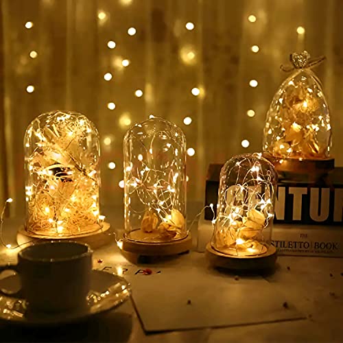 TASVICOO Catena luminosa 5 m, 50 LED, funzionamento a batteria, filo argentato, impermeabile, luce bianca calda, confezione da 2