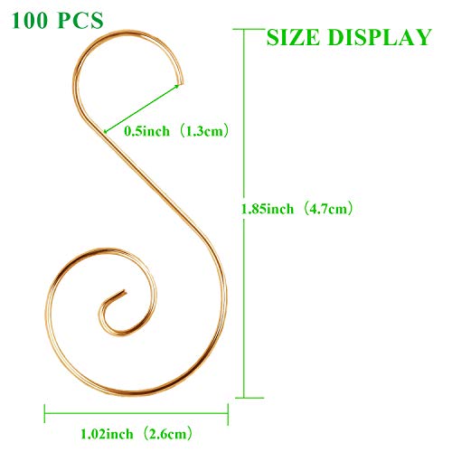TATAFUN Ganci di Ornamento di Natale, 100 Pezzi Mini Appendini per Albero di Natale y Ghirlanda di Natale Decorazione, Appendiabiti in Metallo a Forma di S per L'Albero di Natale(Oro)