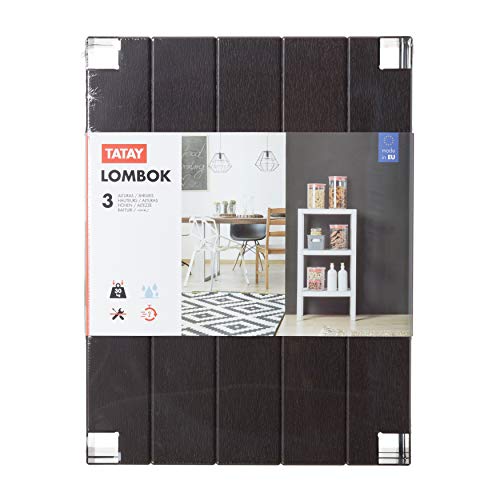 TATAY Mensola Rettangolare Lombok, 3 Altezze, Polipropilene, Senza BPA, Finitura Effetto Legno, Tamponi Antiscivolo, Max 10 kg per Ripiano, Facile Assemblaggio, Misure 38 x 29 x 73.5 cm, Marrone