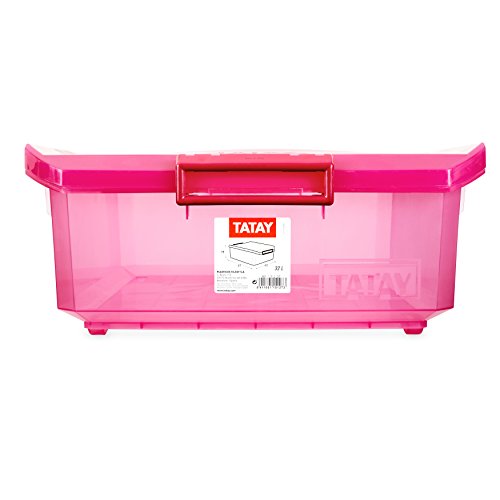 TATAY Scatola Multiuso con Coperchio, Sotto Letto, Plastica, Rosa (Fucsia), 32 L