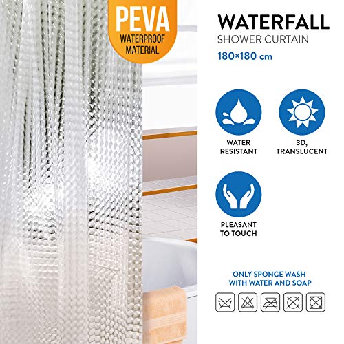 Tatkraft Waterfall Tenda Doccia Trasparente 180 X 180 cm in Materiale PEVA Stampa 3D