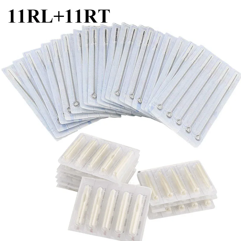 11RL+11RT - Tattoo Needles Tubes Tips Mixed 100PCS Professional Tattoo Needles 11RL & Disposable Plastic Tattoo Tips 11RT Combo
