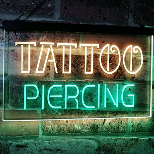 Tattoo Piercing Art Inked Shop Display Dual Color LED Enseigne Lumineuse Neon Sign Vert et jaune 600 x 400mm st6s64-i2482-gy