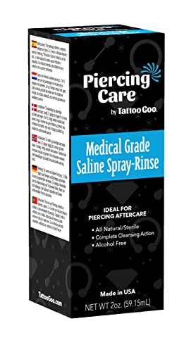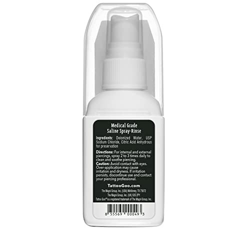 Tattoo Goo Risciacquo dello spruzzo salinico di grado medico, spruzzo sterile di post-cura di grado medico & risciacquo per i piercing - Pulisce, disinfetta e guarisce in modo sicuro con cloruro di sodio 99,9% - 2 oz