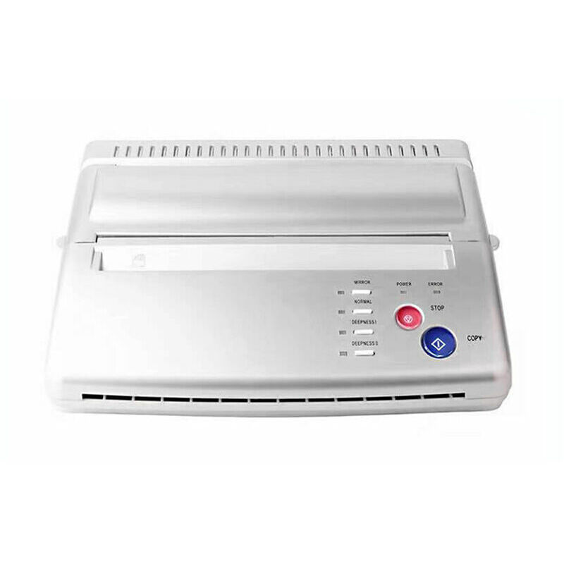 Copiatrice di tatuaggi professionale - Ti consente di copiare i disegni su carta per stencil in modo rapido ed efficiente in pochi semplici passaggi. Copia perfettamente il tuo disegno sulla pelle senza errori. Eccellente fotocopiatrice per tatuaggi, funziona per la progettazione di carta comune. Trasferimento facile e veloce - Solo 1 minuto può fornire la tua bellissima icona e foto, essere rapidamente darti un tatuaggio professionale e vivido che desideri. Questa macchina ti darà più velocità ed economia per un bellissimo tatuaggio. elementi riscaldanti, più economici rispetto ad altre macchinette per tatuaggi tradizionali. Impostazioni multiple - Ci sono più pulsanti/tasti per diverse funzioni, puoi scegliere i metodi di copia, profondità, ecc., che è molto comodo e funzionale. Due indicatori luminosi, la spia di alimentazione indica quando la macchina inizia a funzionare, la spia di errore indica qualcosa di sbagliato nella macchina, come il surriscaldamento del TPH. Ottimo