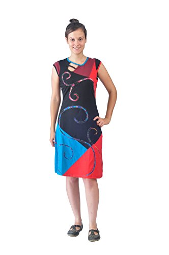 TATTOPANI Abito Senza Maniche da Sera delle Donne con i Modelli Colorati e Zone del Ricamo
