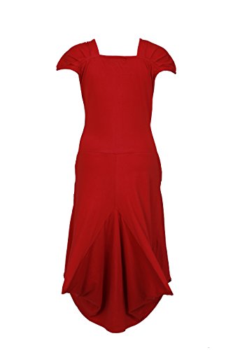 TATTOPANI Donne Maniche Corte Vitello Lunghezza del Vestito con Ricamo del Fiore Stampato sulle Tasche.