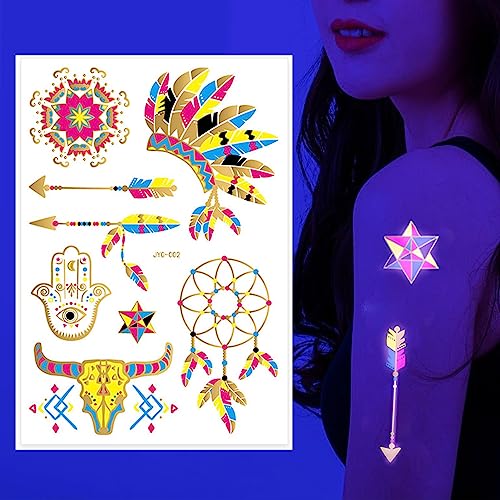 ■Festa in primo piano: lasciati brillare con i nostri tatuaggi finti fluorescenti e brillanti nella luce scura. Sarai al centro dell'attenzione a qualsiasi festa, accattivante.