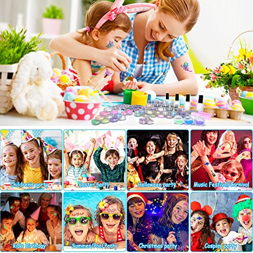 ✨ Tatuaggio Fluorescente per Bambini - Il kit tatuaggi per bambini viene fornito con polvere luminosa a 12 colori, rispetto ai normali tattoo temporanei bambini, rendi la notte molto più divertente con questo fantastico tatuaggio luminoso. Per far risplendere il tatuaggi finti, il polvere fluorescente deve essere esposto alla luce solare (o alle luci), più a lungo viene inondato di luce, più a lungo e più luminoso si illuminerà. Ideale per Halloween, festival musicali, feste di carnevale.