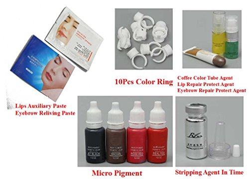 Colori e riparazione:Colori in micro-pigmenti (1 pezzi), agente protettivo per labbra/sopracciglia, tubetto color caffè, agente per la rimozione, pasta ravvivante per sopracciglio, pasta ausiliaria per labbra.Ti rendono più bella e affascinante.